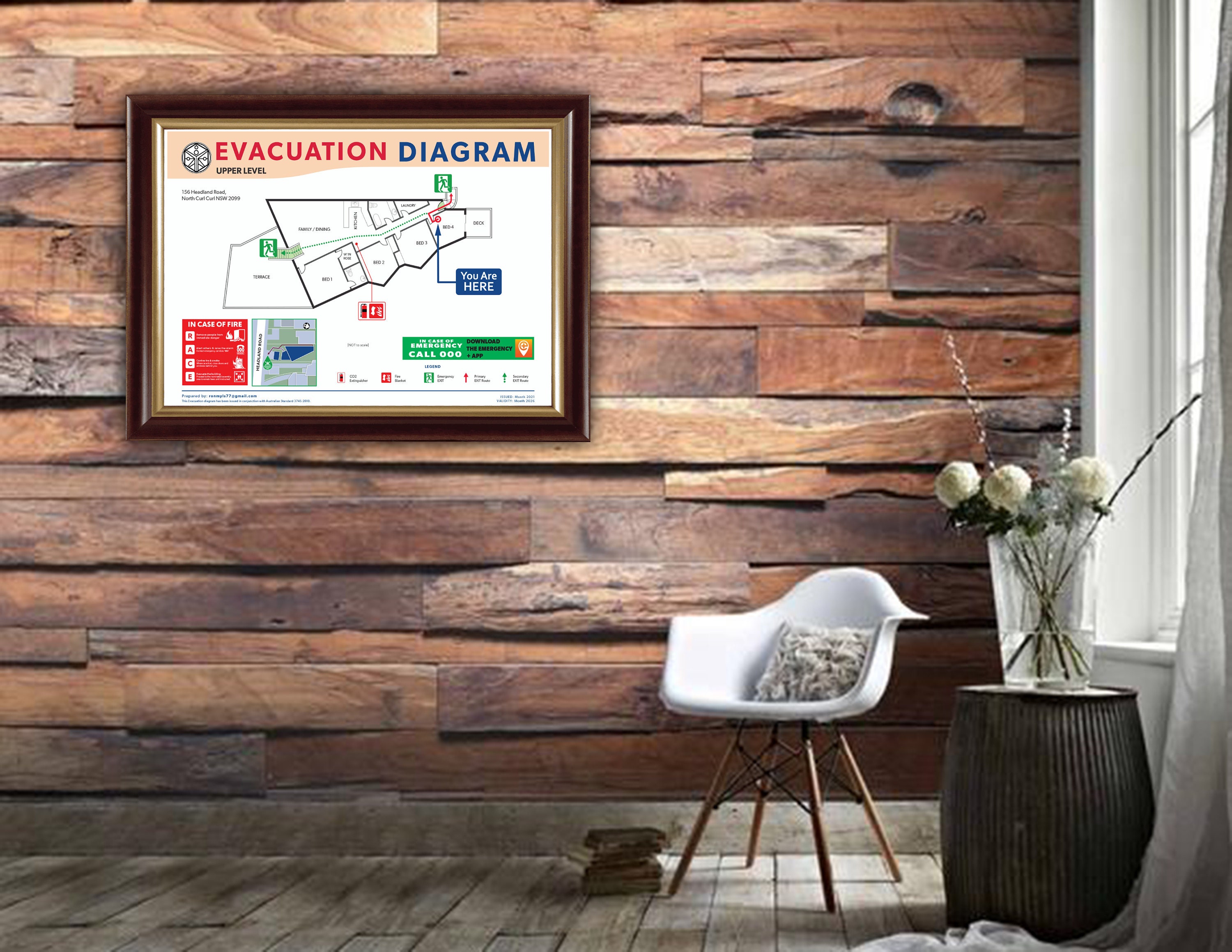Step into the vicinity of your property where safety is paramount and peace of mind is guaranteed. Picture sleek, meticulously crafted evacuation diagrams adorning the walls of every corridor and rooms, exit and entrances, each one a beacon of preparedness and assurance. With the latest and most updated information at your fingertips, these diagrams seamlessly guide you through escaping potential emergencies and life threatening situations with clarity and precision. Bold symbols and intuitive pathways promise swift and secure evacuation, leaving no room for uncertainty. In this environment, safety isn't just a priority—it's a promise fulfilled, ensuring that every individual can navigate crises confidently and emerge unscathed.