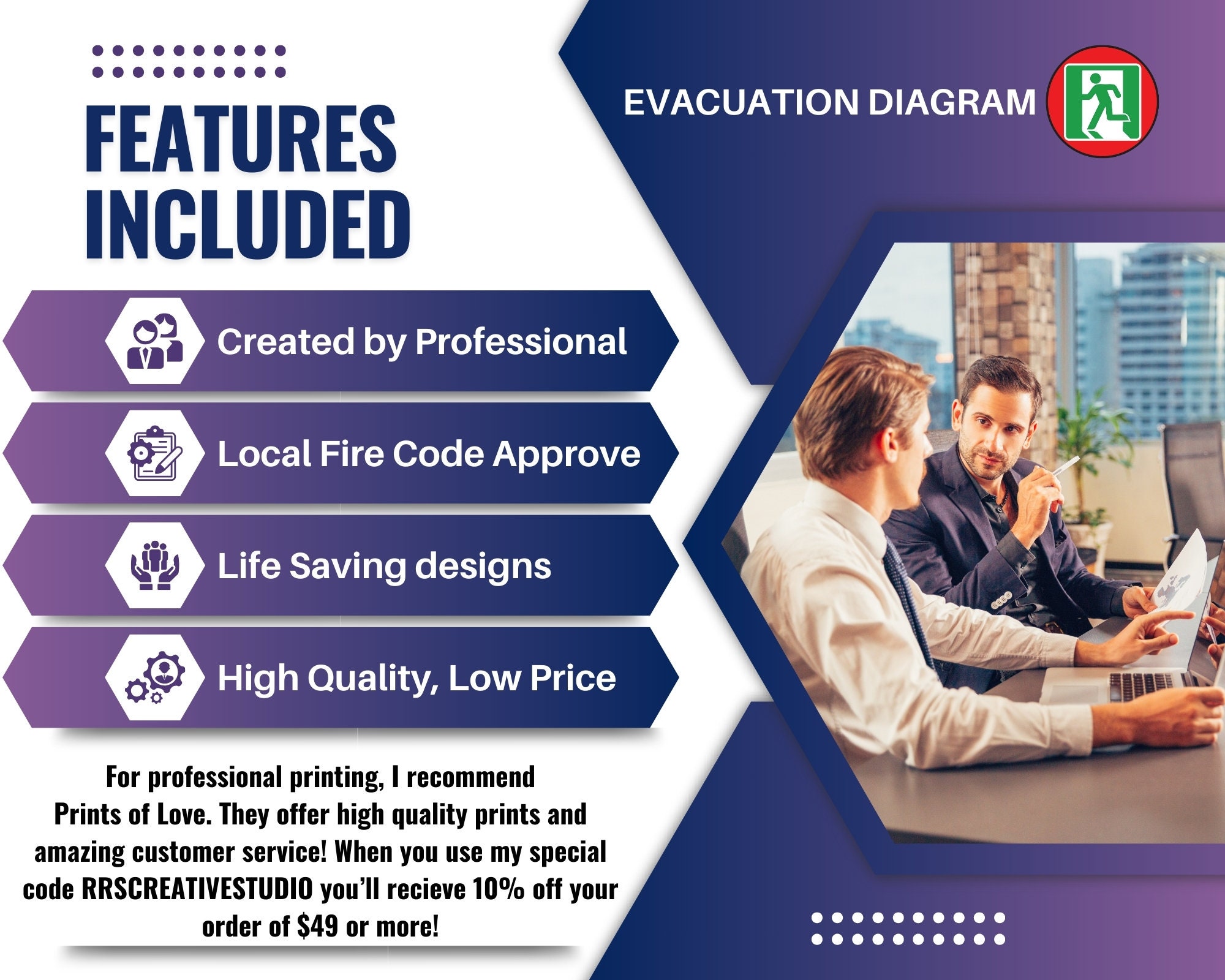 Step into the vicinity of your property where safety is paramount and peace of mind is guaranteed. Picture sleek, meticulously crafted evacuation diagrams adorning the walls of every corridor and rooms, exit and entrances, each one a beacon of preparedness and assurance. With the latest and most updated information at your fingertips, these diagrams seamlessly guide you through escaping potential emergencies and life threatening situations with clarity and precision. Bold symbols and intuitive pathways promise swift and secure evacuation, leaving no room for uncertainty. In this environment, safety isn't just a priority—it's a promise fulfilled, ensuring that every individual can navigate crises confidently and emerge unscathed.
