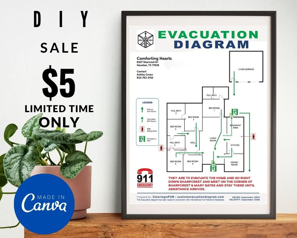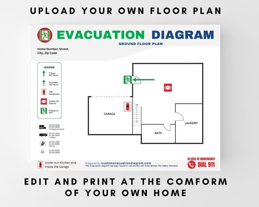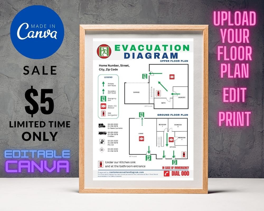 A4 size for regular orders of evacuation diagrams, but if you need a bigger size, just inform us.