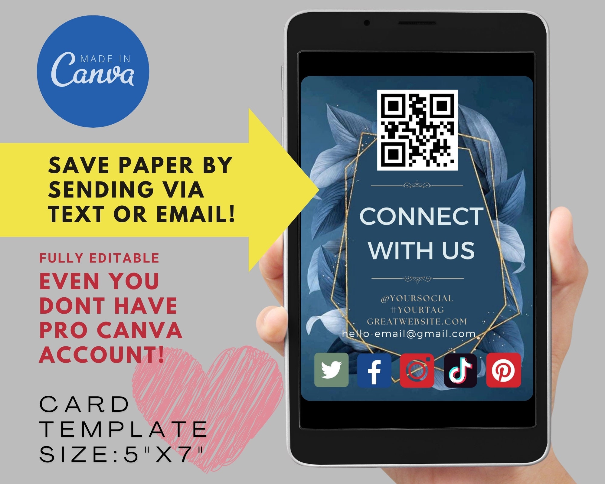 Social Media Sign Template, Follow Us QR Sign, Connect with us, Small Business Sign, Facebook Sign AquaBlue