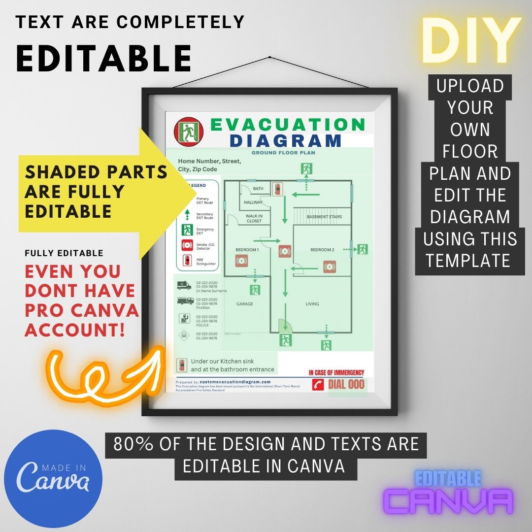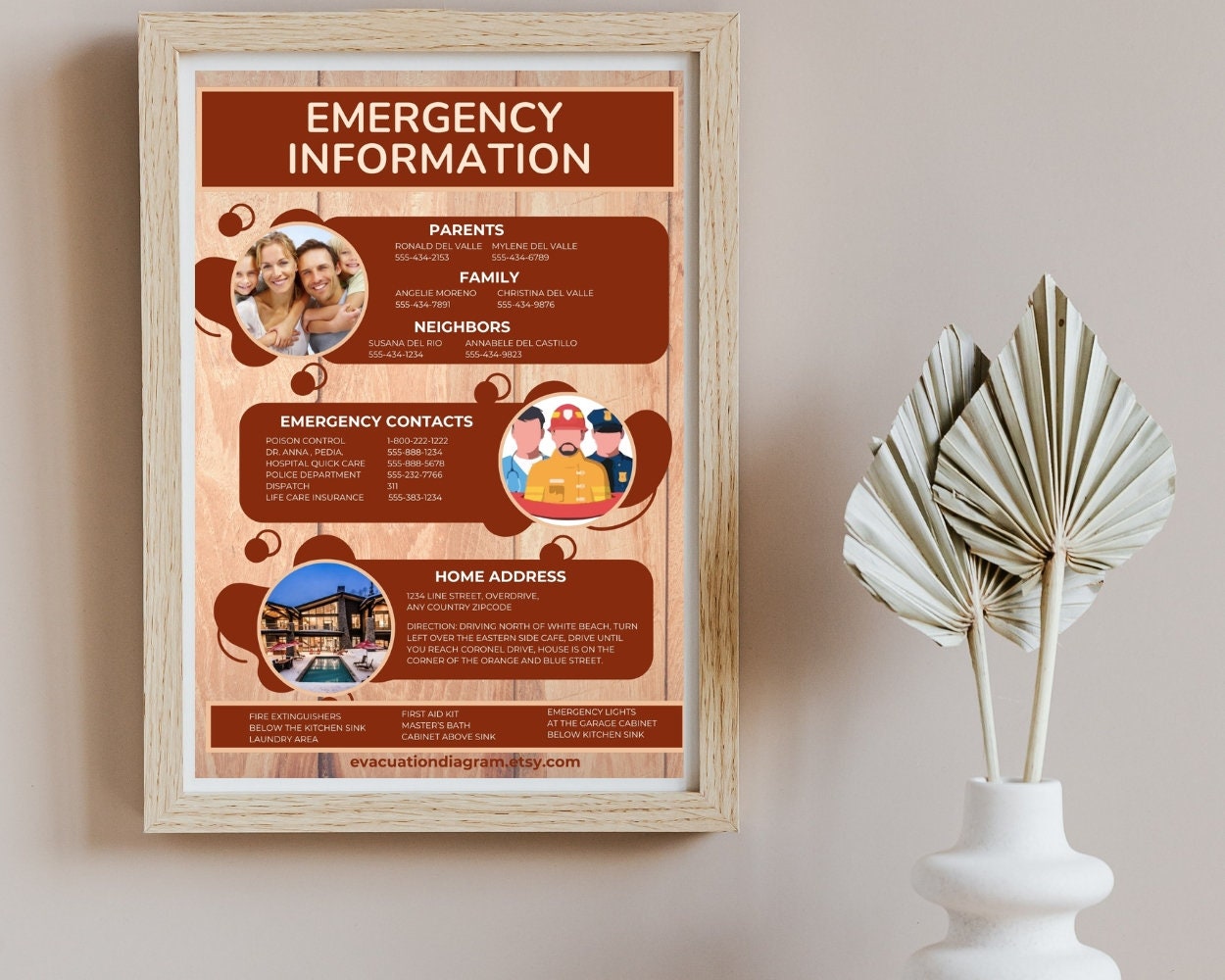 Emergency Information Sheet Downloadable Editable in Canva Personalize Contact Info Template, Airbnb Information Template, Fridge Poster
