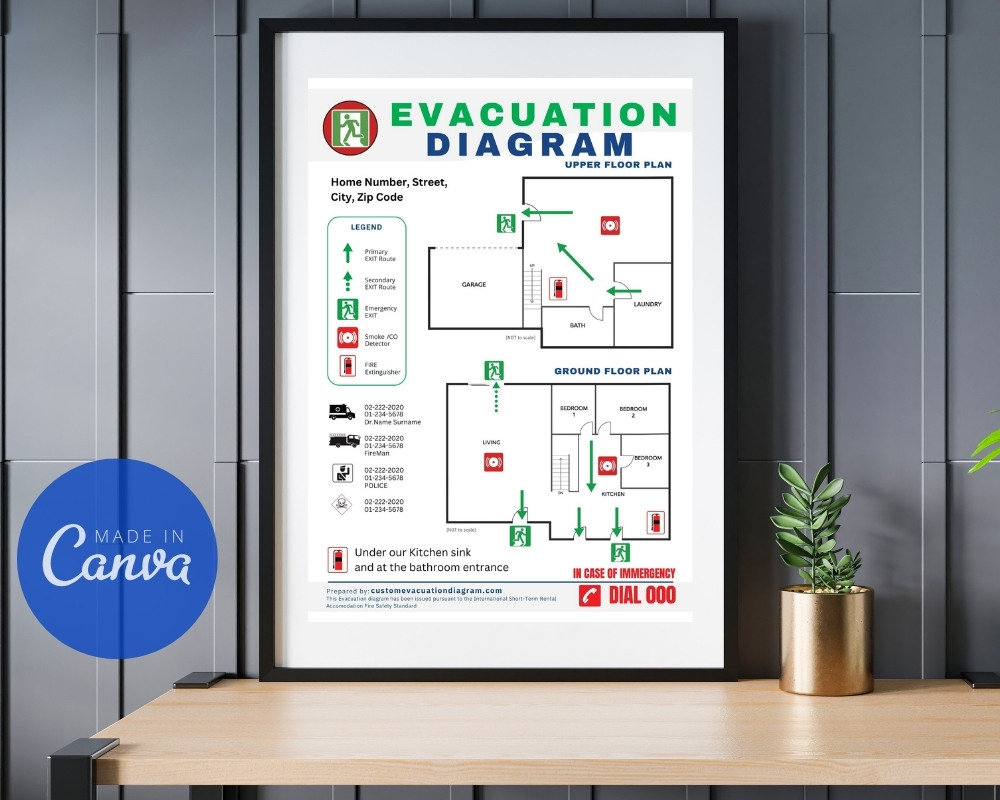 A4 size for regular orders of evacuation diagrams, but if you need a bigger size, just inform us.