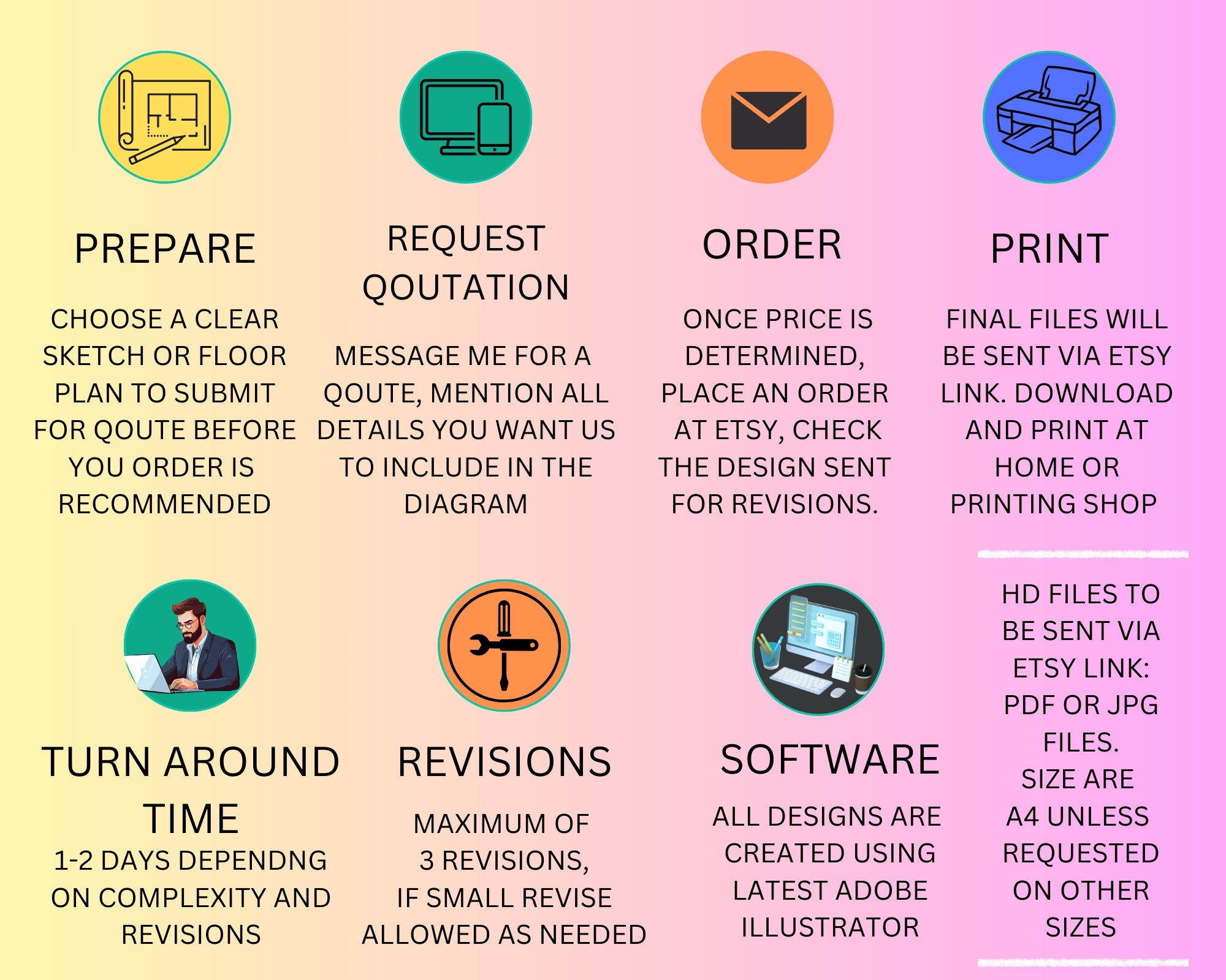 Please send a clear and readable floor plans. If you need to write instructions and labels, please write using all capital letters, avoid using lowercase for us to easily read your writings.