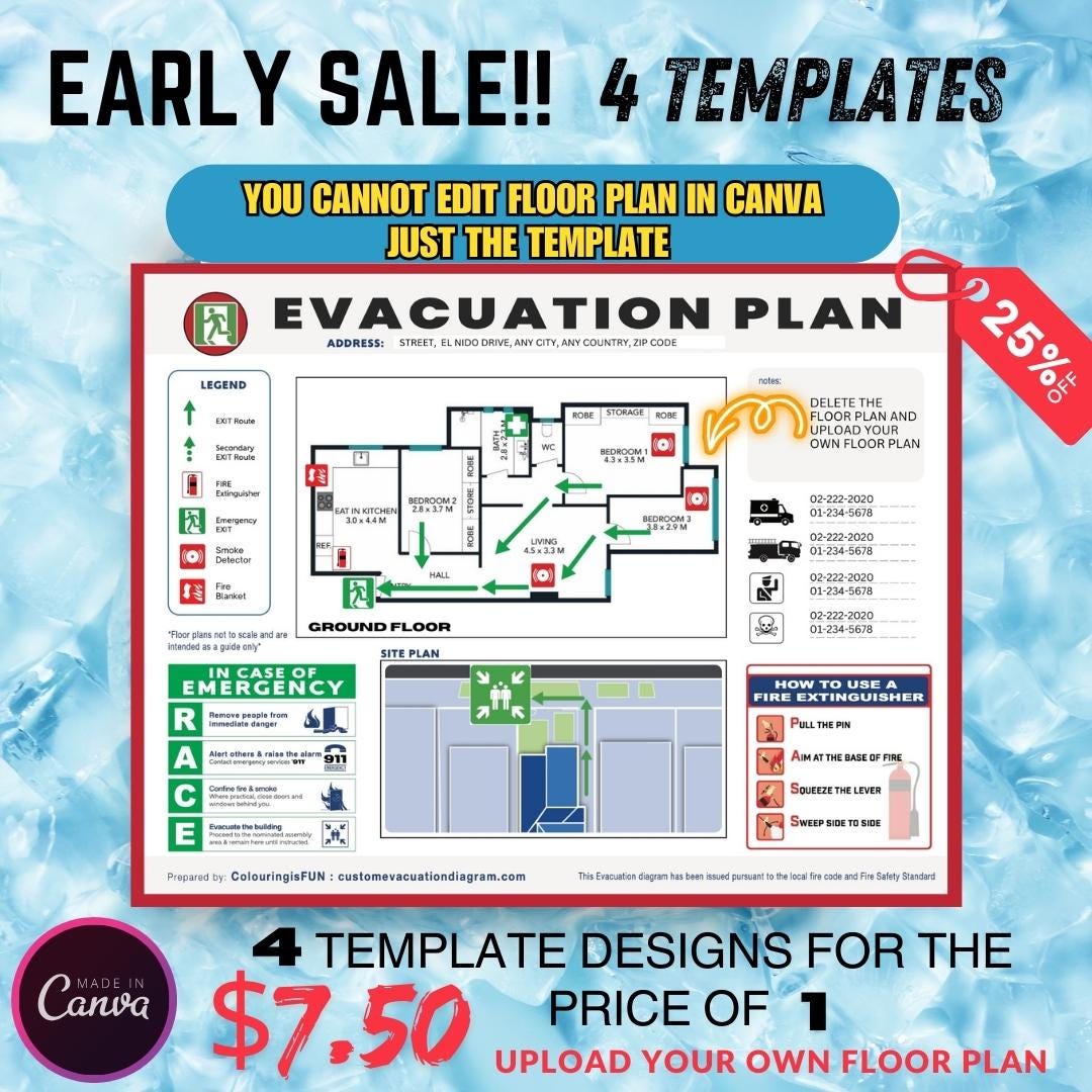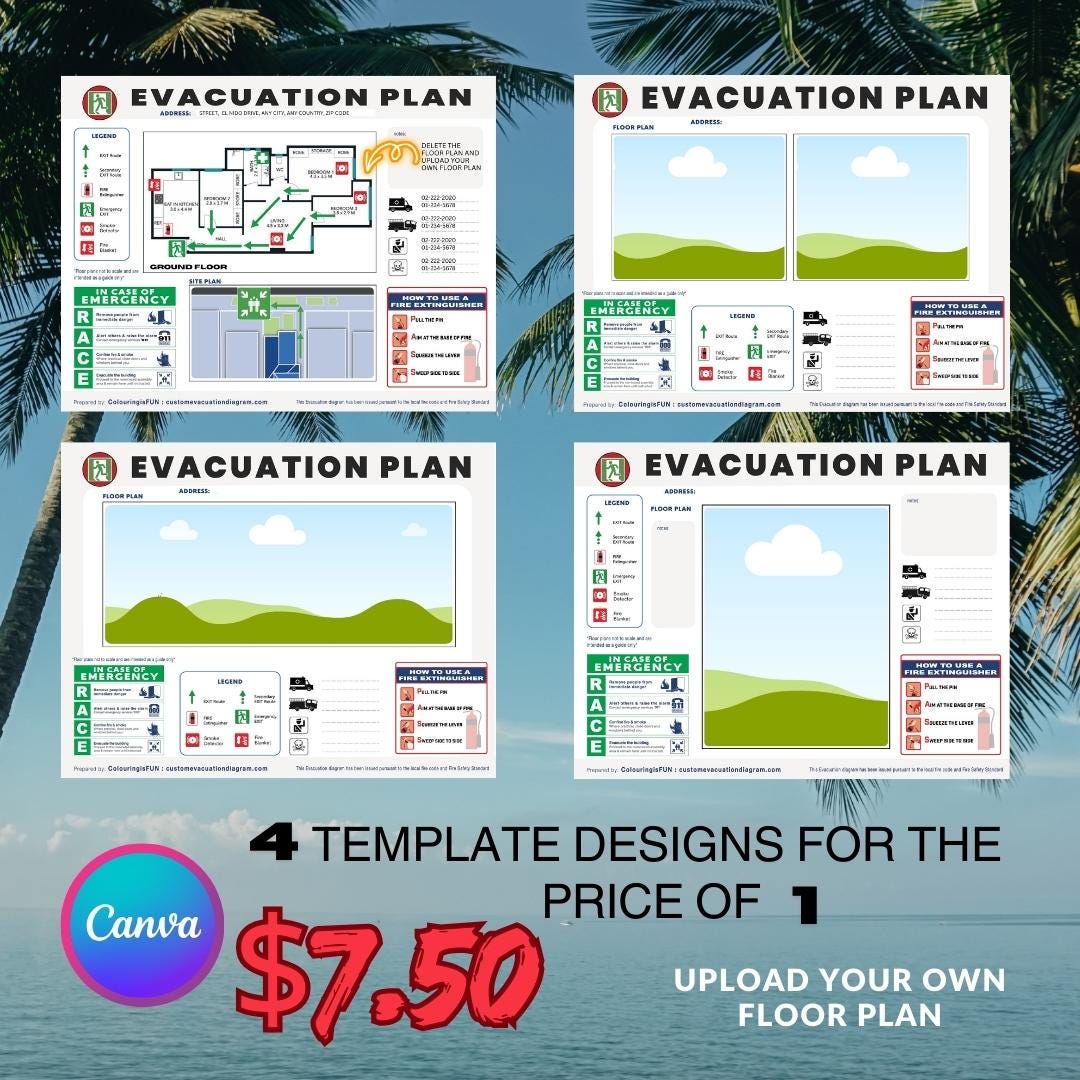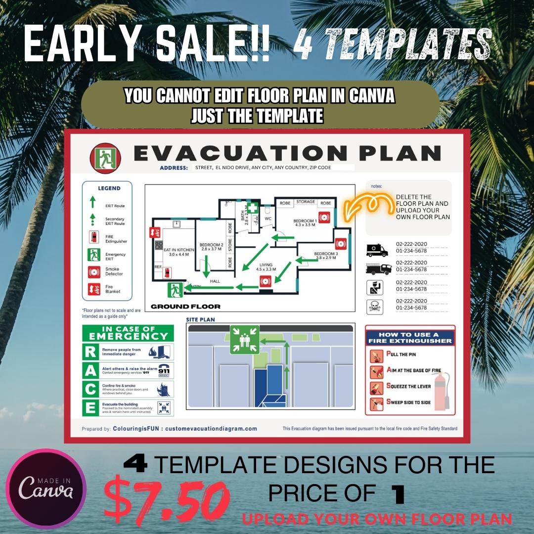 Evacuation Diagram Canva Template - 4 Customizable Designs